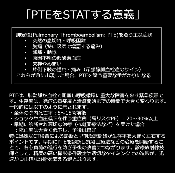 肺動脈塞栓(PTE)を疑う画像です。