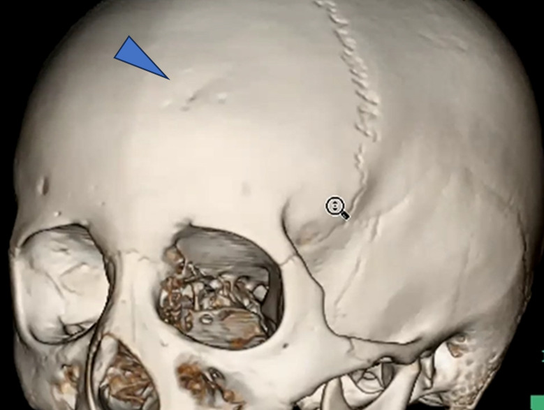 小児は骨が柔らかいため、外板のみが折れて陥没し、完全骨折に至らず所見が目立ちにくいことがあります。出血も初期は少量で、時間経過とともに明瞭化しました。本症例は外傷性陥没骨折、外傷性くも膜下出血・硬膜下血腫、脳挫傷と診断されました。